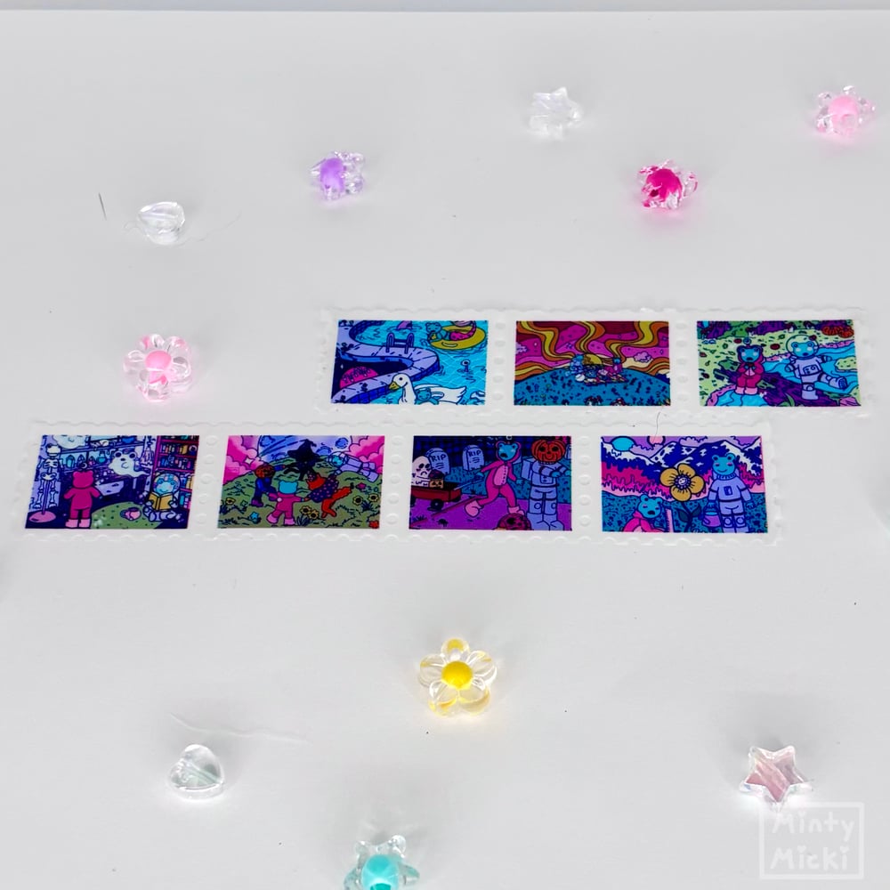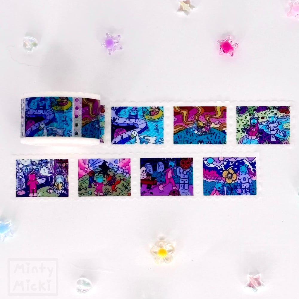 This washi tape comes with all 7 different space frog designs from minty micki